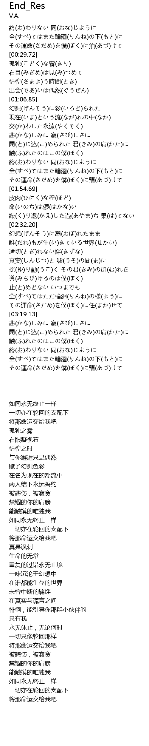 | [03:59.67] | 全(すべ)てはまた輪廻(りんね)の下(もと)に |