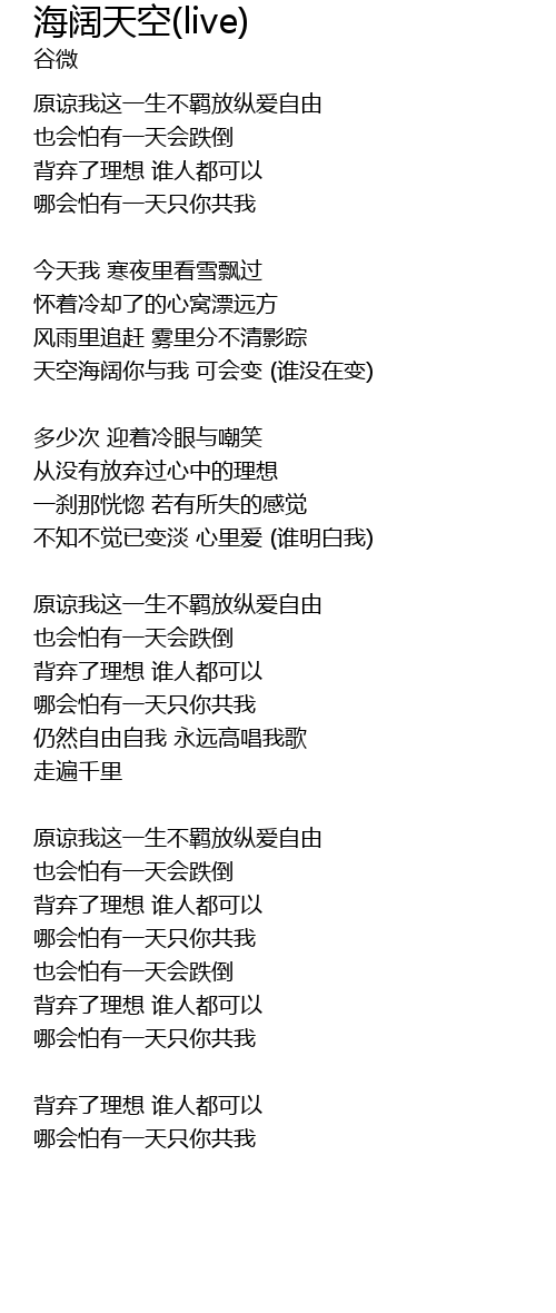 | 天空海阔你与我 可会变 (谁没在变) | |