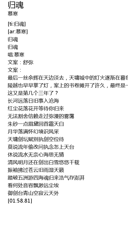 | [00:05.465] | 唱:慕寒 |
