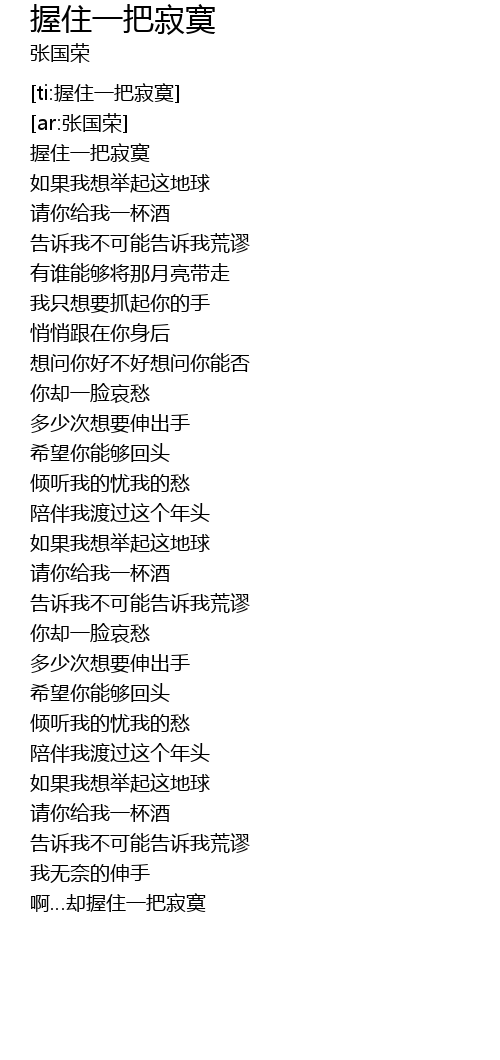 | [03:32.284] | 啊…却握住一把寂寞 |