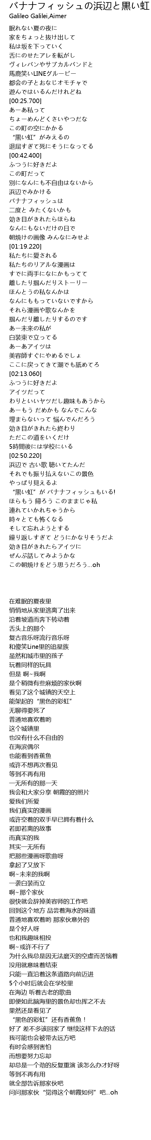 | [03:34.570] | “黒い虹”が バナナフィッシュもいる! |