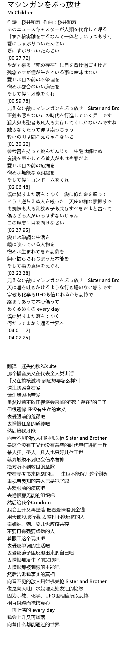 | [03:23.94] | 見えない敵にマシンガンをぶっ放せ Sister and Brother |