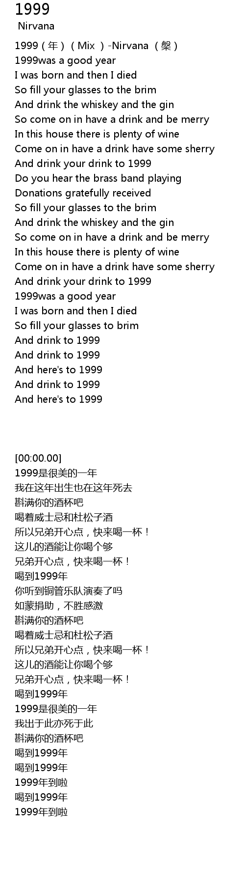 | [00:39.368] | And drink your drink to 1999 |