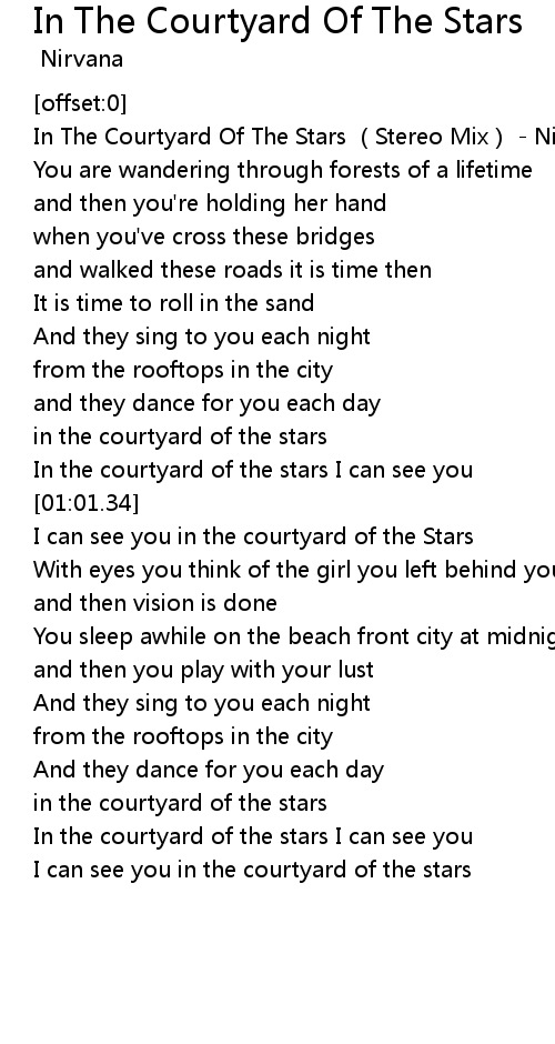 | [00:00.50] | In The Courtyard Of The Stars (Stereo Mix) - Nirvana |