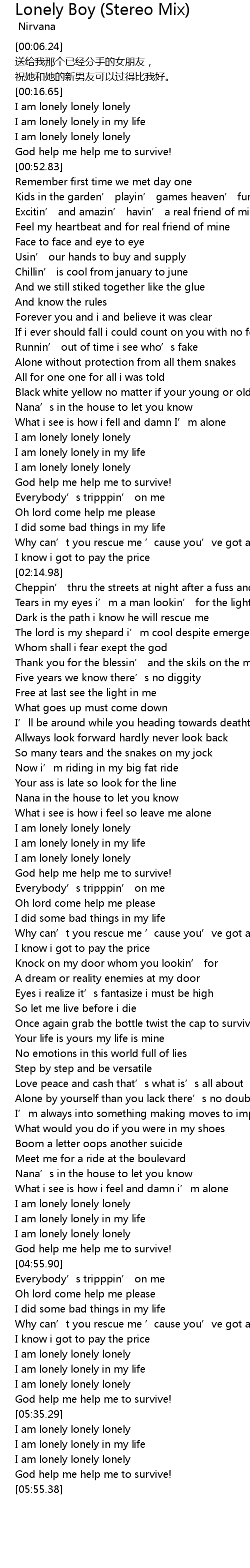 | [05:25.42] | I am lonely lonely lonely |
