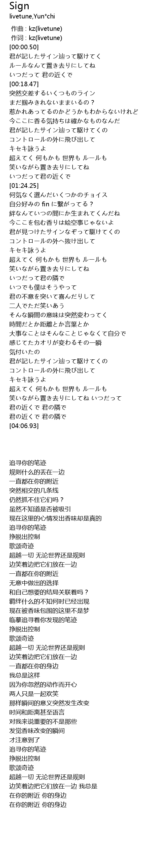 | [00:00.00] | 作曲 : kz(livetune) |
