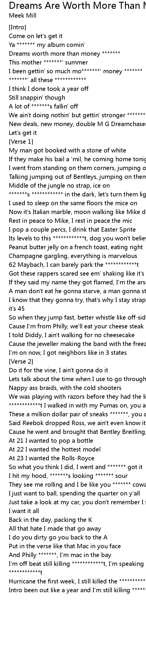 Dreams worth more than money ******* |