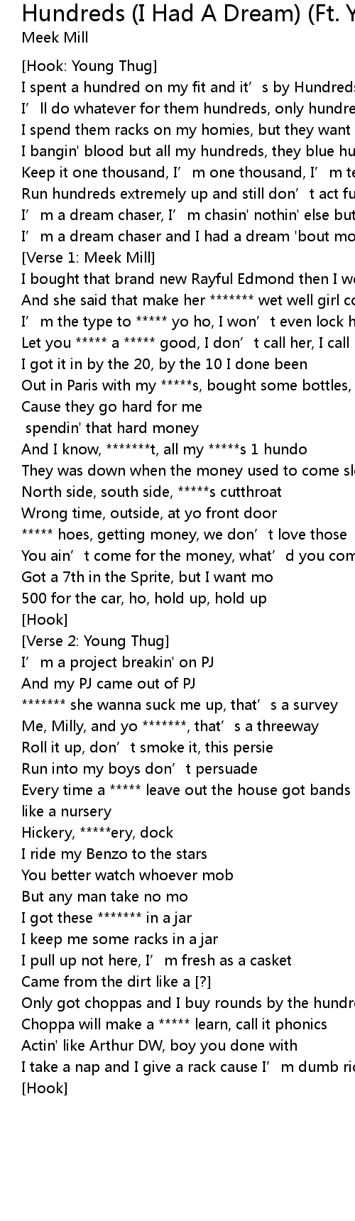 | Song | Hundreds (I Had A Dream) (Ft. Young Thug) |