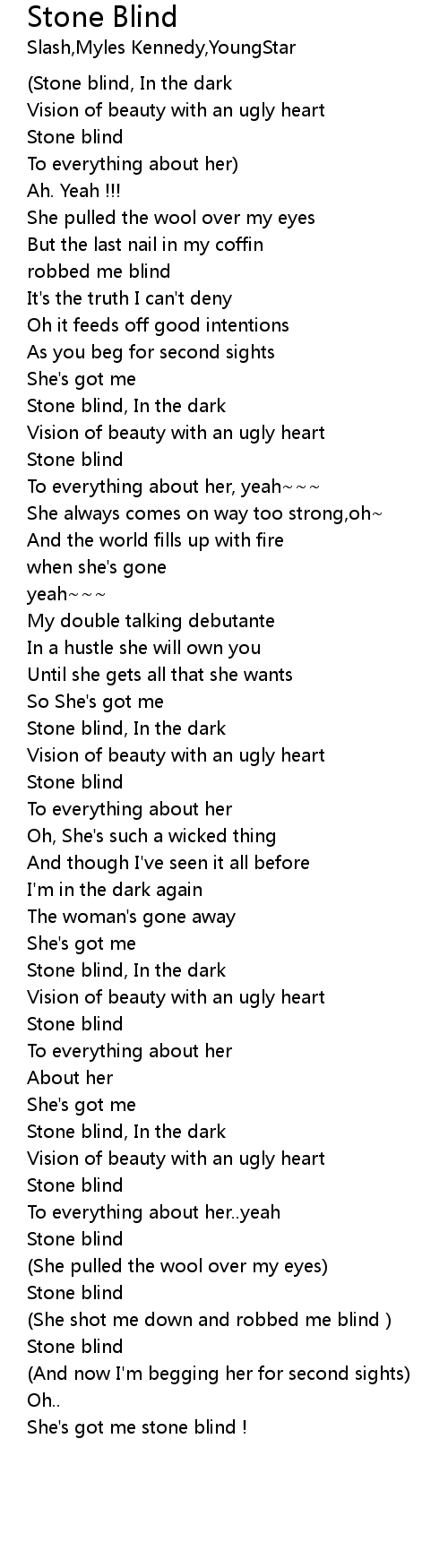| Song | Stone Blind |