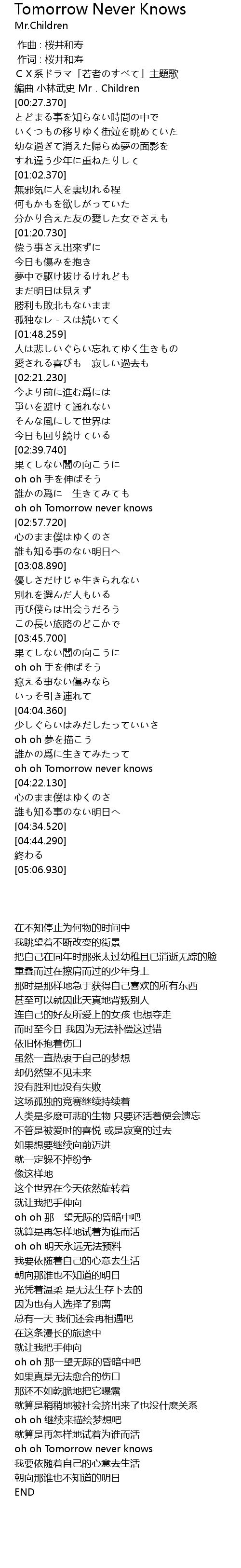| [00:22.290] | 編曲 小林武史 Mr.Children |