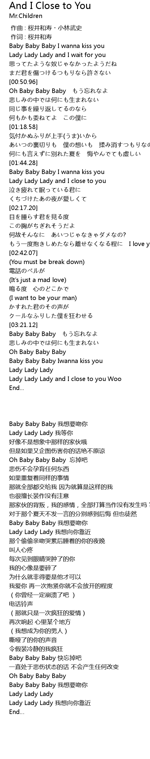 | [01:57.51] | Lady Lady Lady and I close to you |