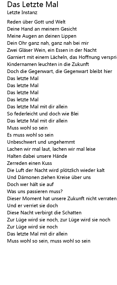| Song | Das Letzte Mal |