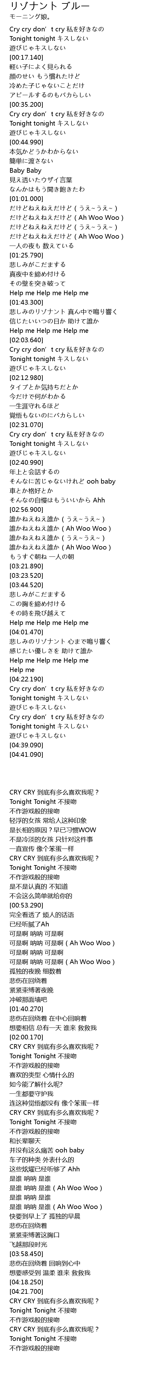 | [04:30.520] | Cry cry don’t cry 私を好きなの |