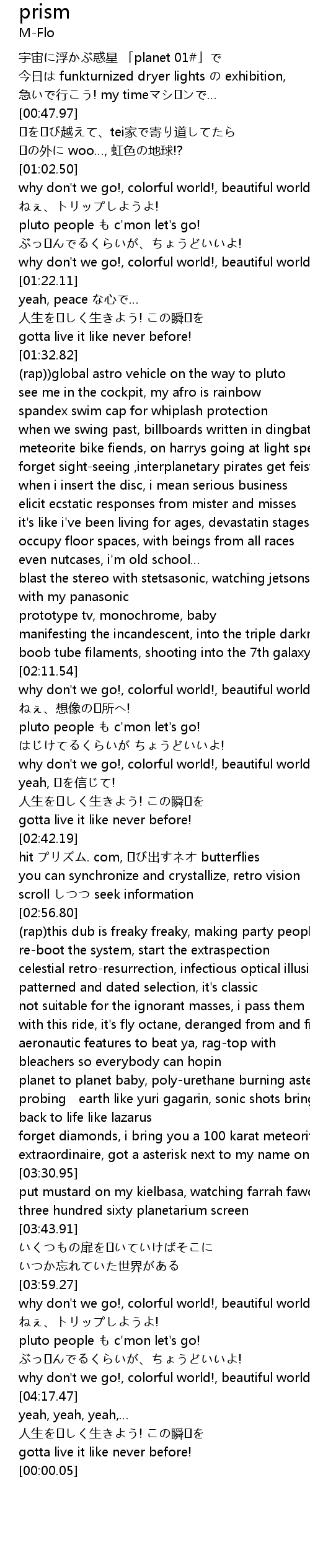 | [02:12.19] | why don' t we go!, colorful world!, beautiful world! |