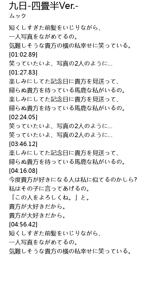 | [01:14.36] | 笑っていたいよ、写真の2人のように… |