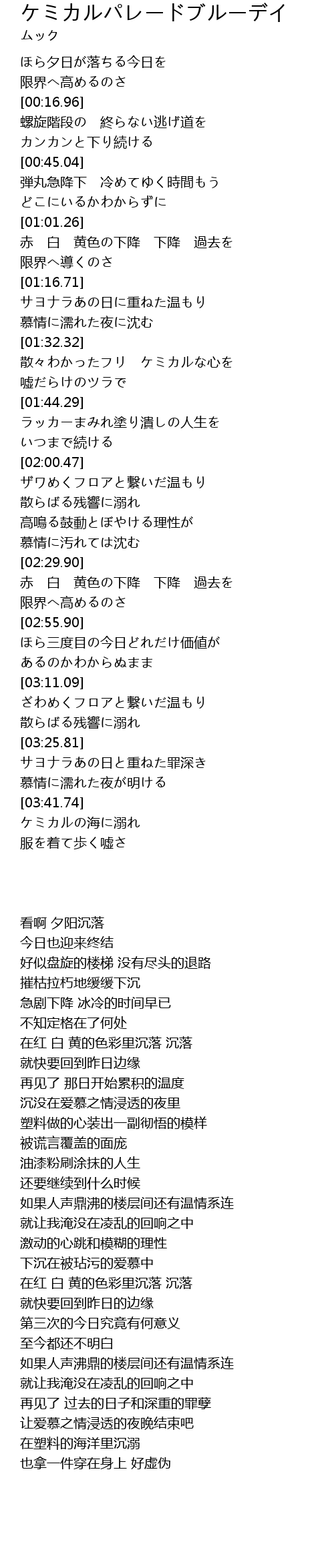 | [03:41.76] | ケミカルの海に溺れ |