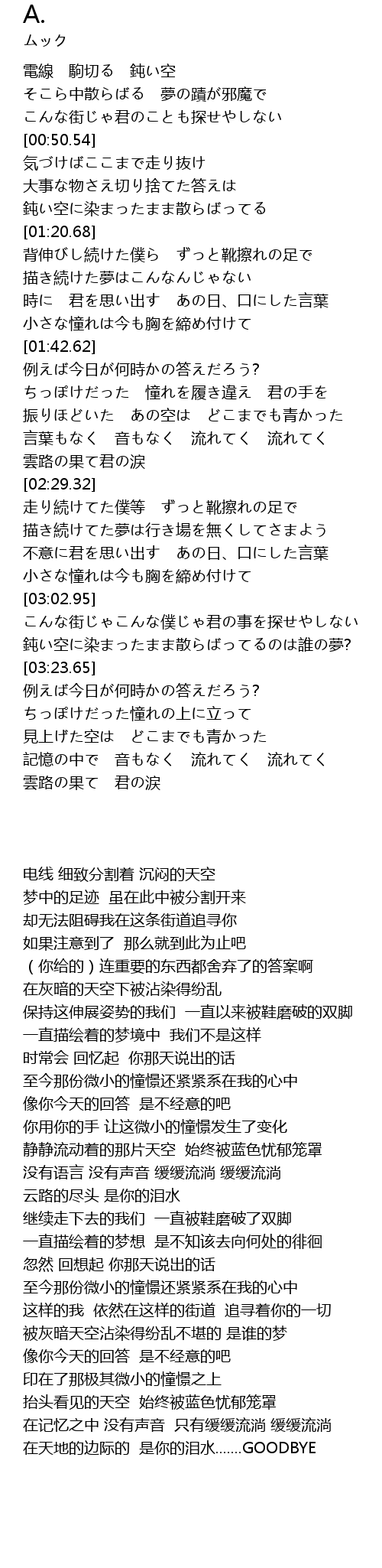 | [02:54.58] | 不意に君を思い出す あの日、口にした言葉 |