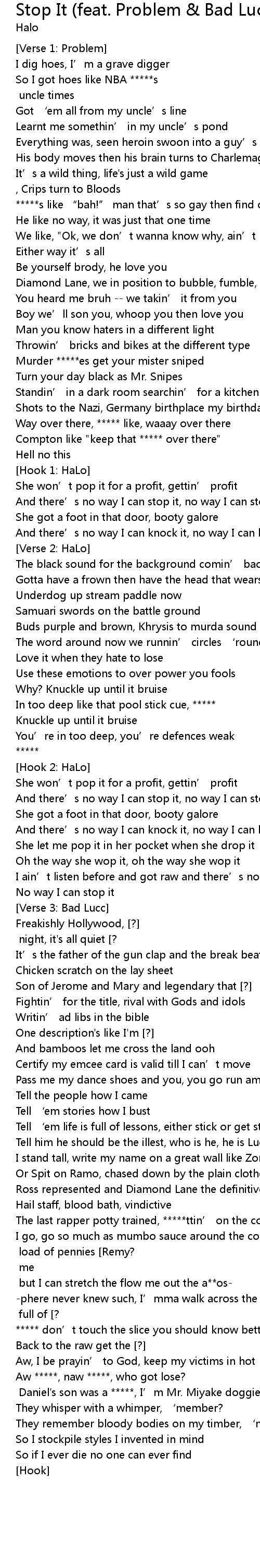 | Song | Stop It (feat. Problem & Bad Lucc) |