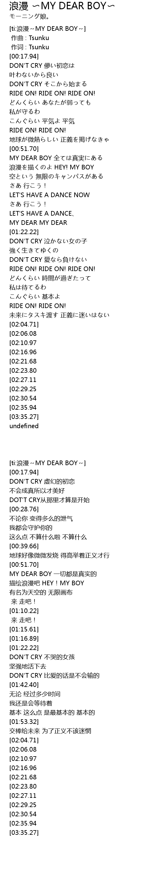 | [00:52.47] | MY DEAR BOY quán zhēn shí |