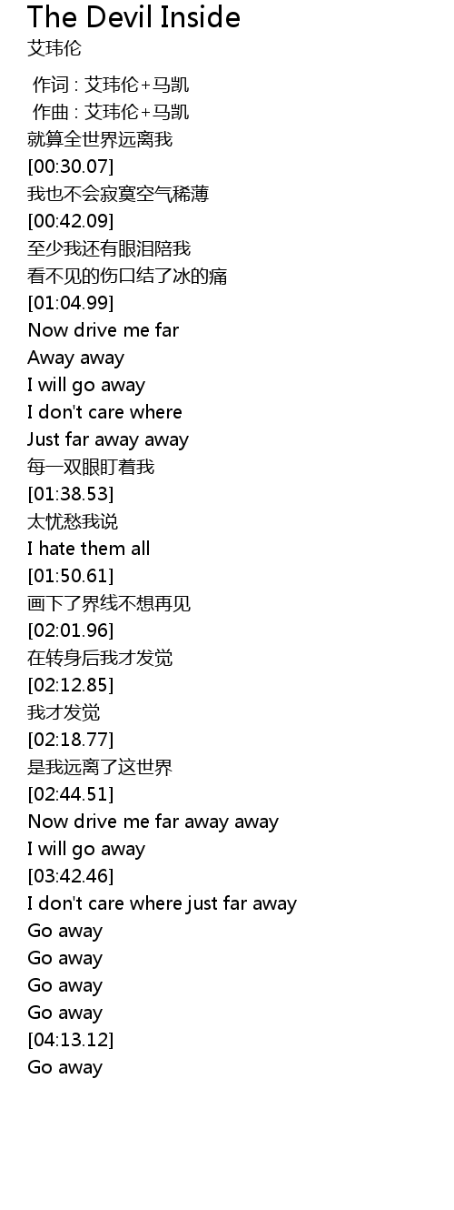| [00:01.000] | 作曲 : 艾玮伦+马凯 |