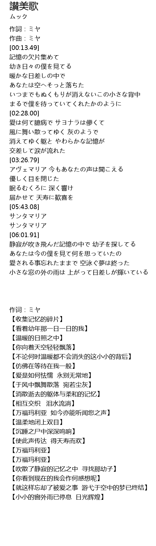 | [04:33.55] | アヴェマリア 今もあなたの声は聞こえる |