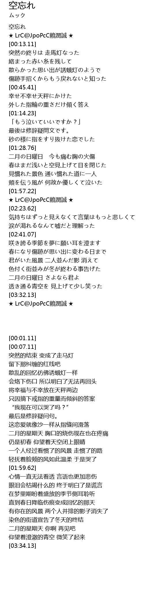 | [00:01.11] | 空忘れ |