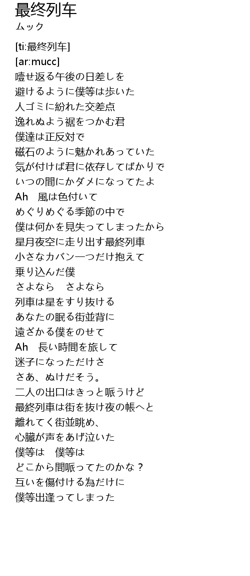 | [01:11.631] | 星月夜空に走り出す最終列車 |