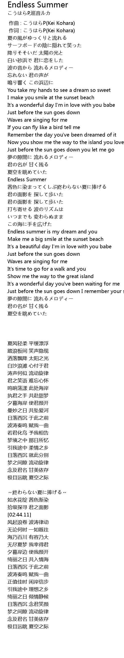 | [02:12.15] | Endless Summer |