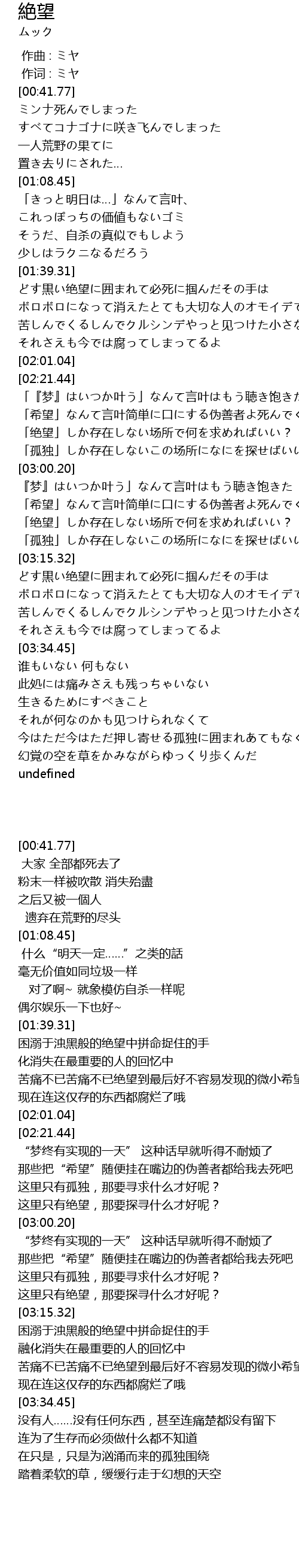| [03:04.20] | 「希望」なんて言叶简単に口にする伪善者よ死んでくれ |