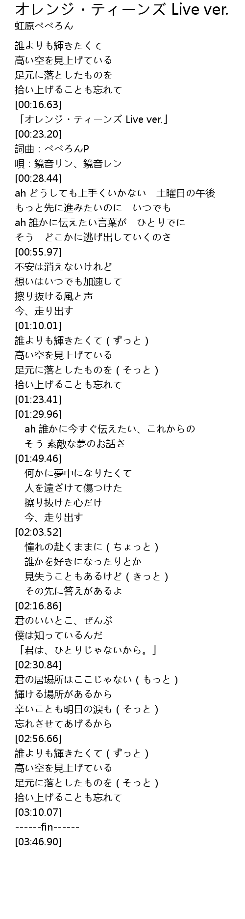 | [00:19.94] | 「オレンジ・ティーンズ Live ver.」 |