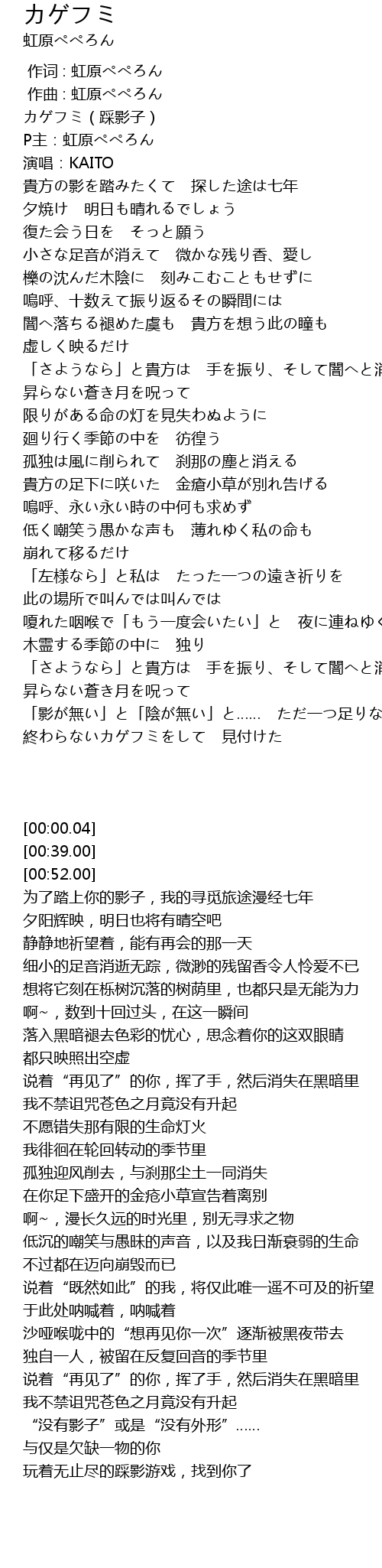 | [00:00.04] | カゲフミ(踩影子) |