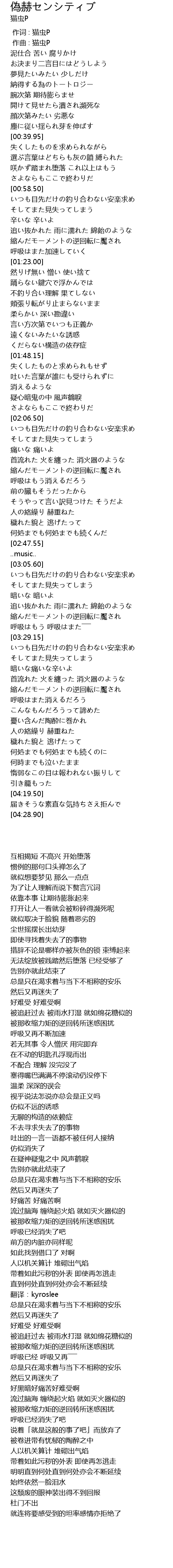 | [00:00.000] | 作词 : 猫虫P |