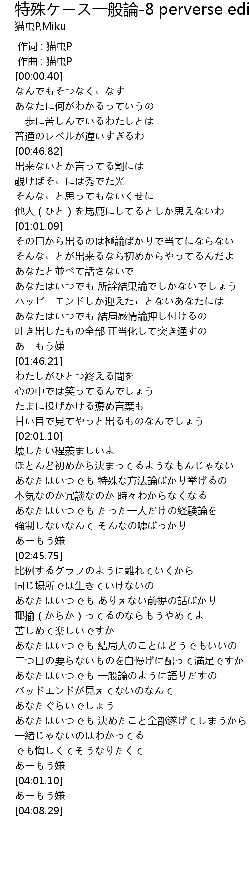 | [00:00.000] | 作词 : 猫虫P |