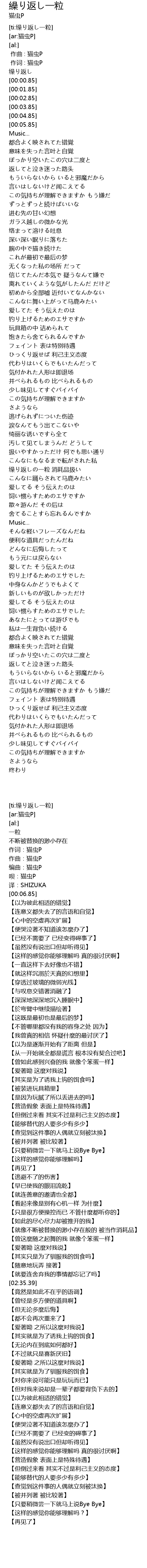 | [00:00.00] | 缲り返し |