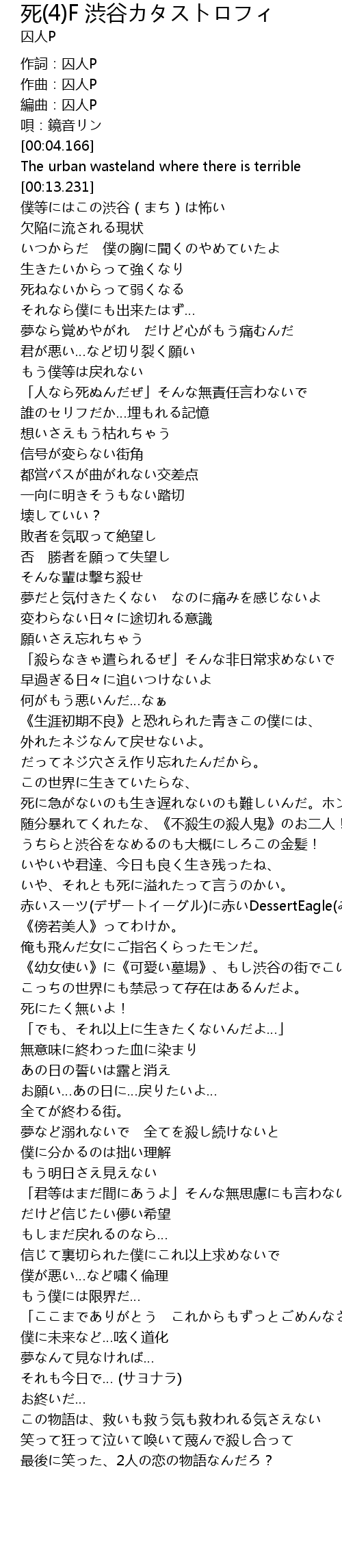 | [03:55.455] | 「ここまでありがとう これからもずっとごめんなさい」 |