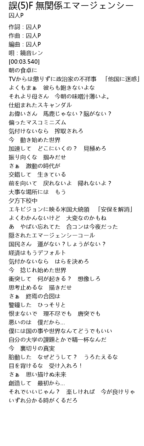 | [03:50.178] | 僕には国の事や世界なんてどうでもいい |