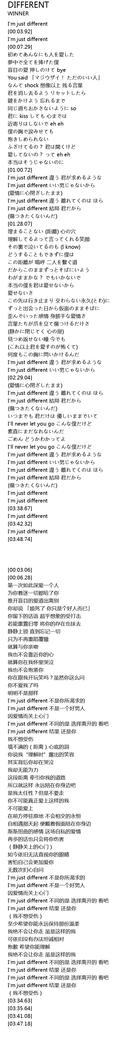| [03:28.56] | I'm just different 結局 君だから |