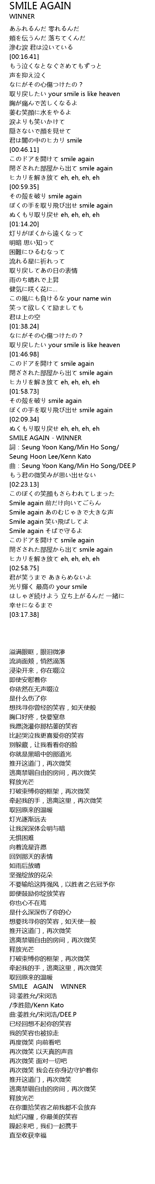 | [02:13.44] | SMILE AGAIN - WINNER |