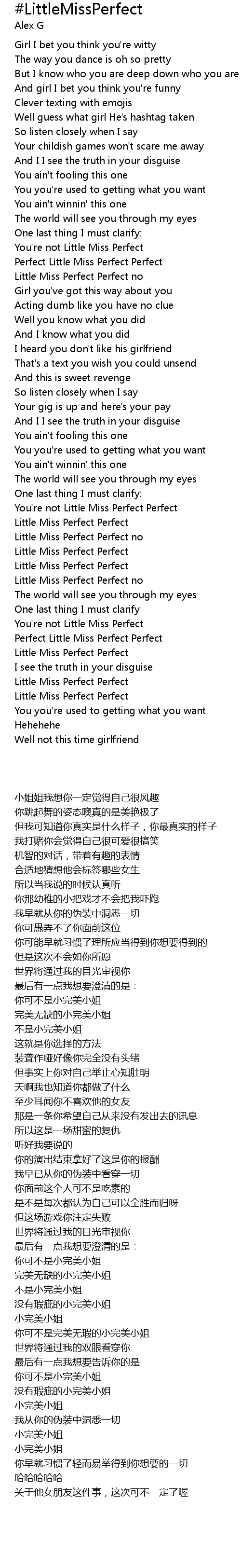 | [02:33.86] | Little Miss Perfect Perfect no |