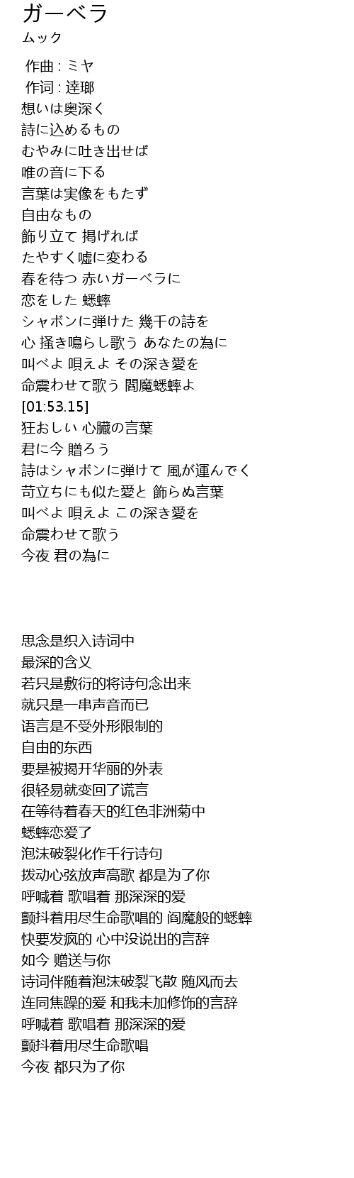 | [01:35.53] | 叫べよ 唄えよ その深き愛を |