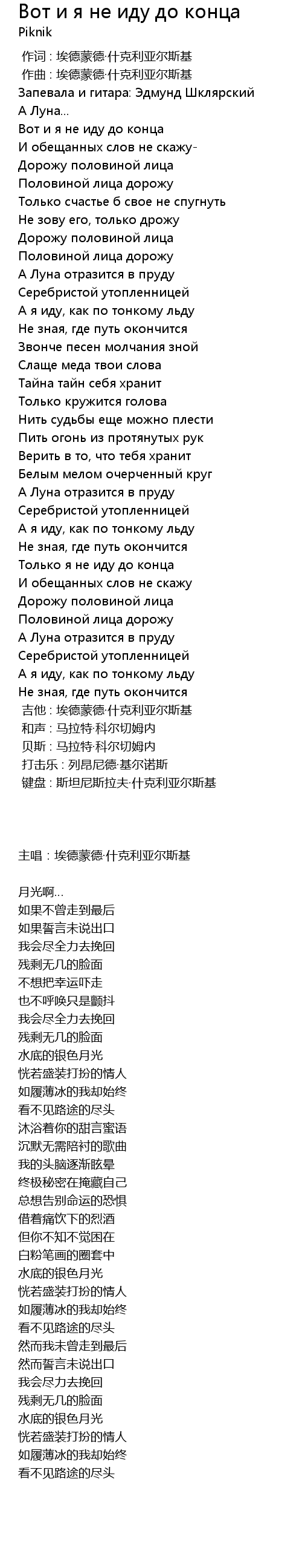 | Song | Вот и я не иду до конца |