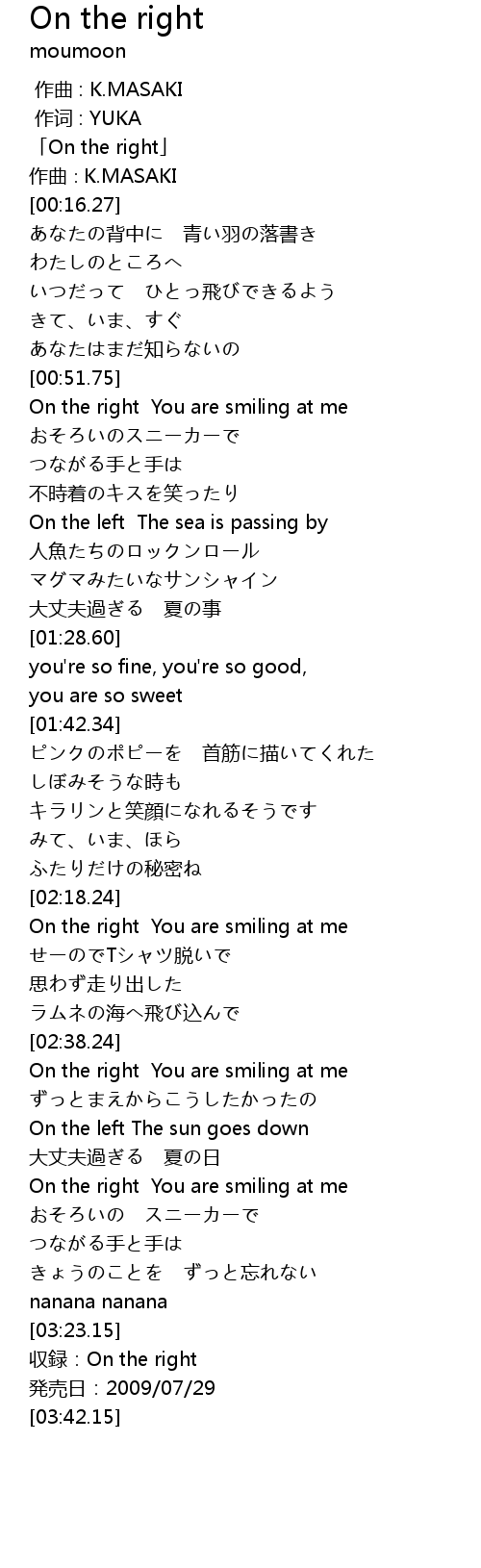 | [02:53.52] | 大丈夫過ぎる 夏の日 |