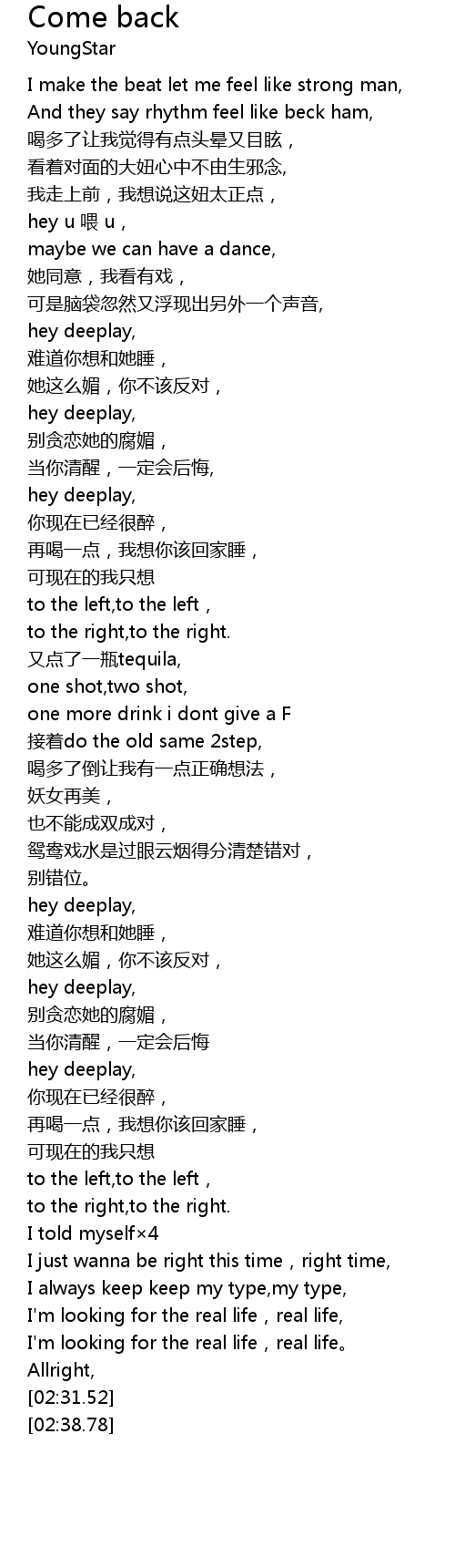 | [02:18.23] | I' m looking for the real life, real life. |