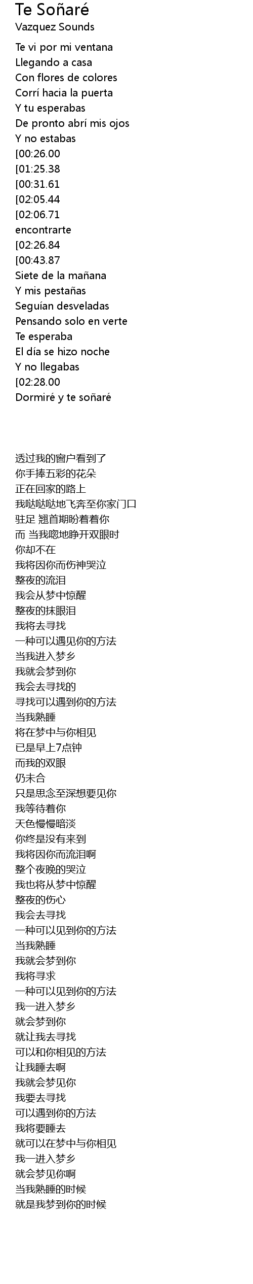 | [02:33.36][02:28.00][02:22.77][02:12.10][01:50.54][01:39.92] | Y te soñaré Dormiré y te soñaré |