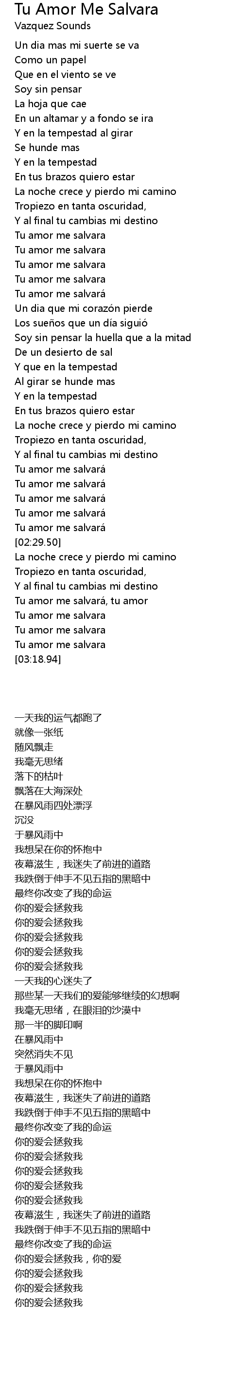 | [02:58.16] | Tu amor me salvara, tu amor |