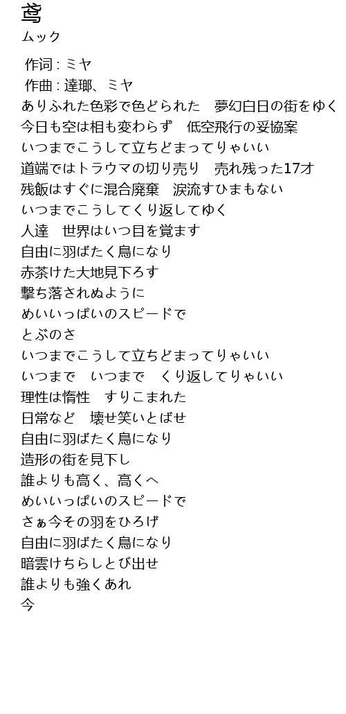 | [00:00.000] | 作词 : ミヤ |
