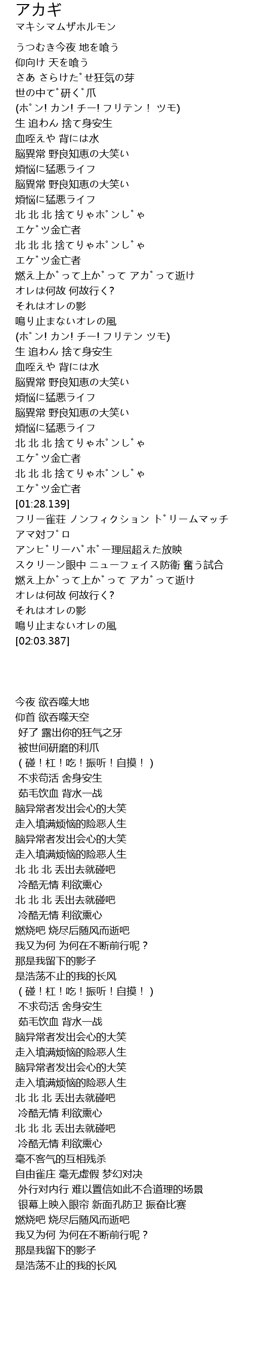 | [00:00.796] | うつむき今夜 地を喰う |