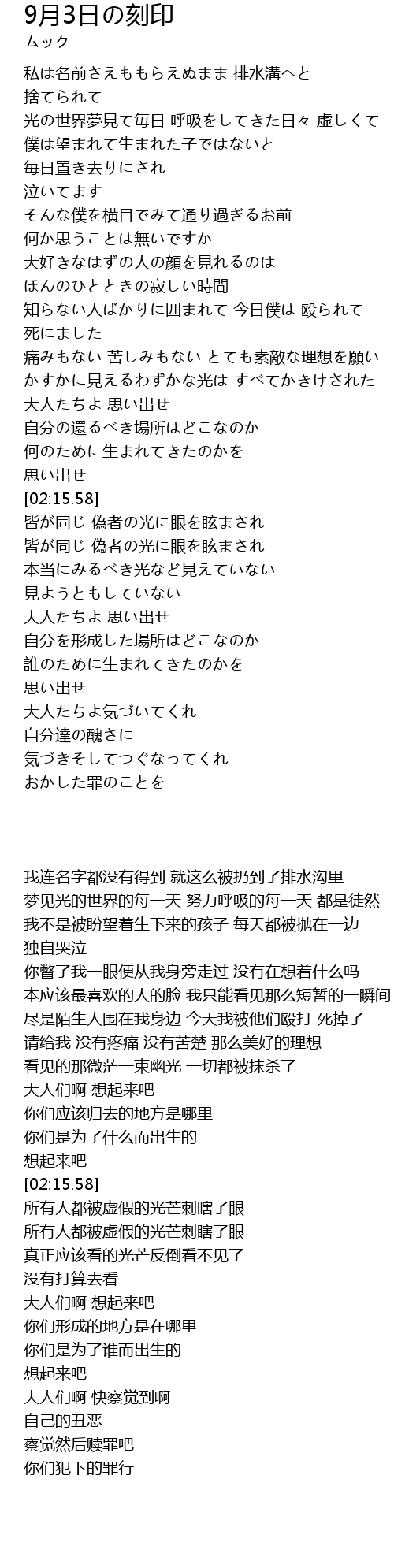 | [00:39.53] | 僕は望まれて生まれた子ではないと 毎日置き去りにされ |