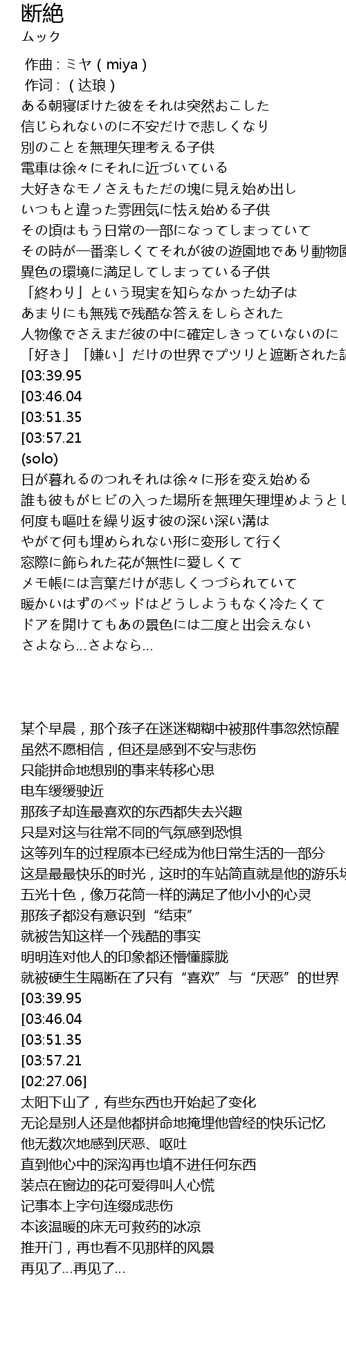 | [01:58.35] | 「好き」「嫌い」だけの世界でプツリと遮断された記録 |