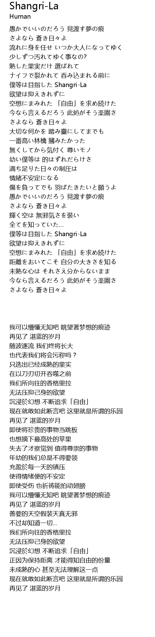 | [03:30.44] | pú děng mù zhǐ ShangriLa |